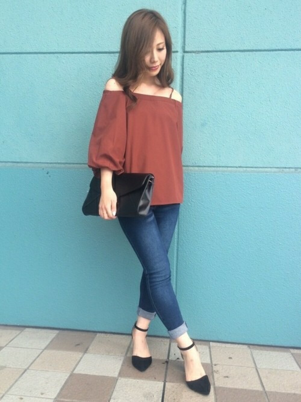 ふわっとした袖がポイントです! 今年は袖に特徴があるものがトレンドなので押さえておきたいアイテムです! トップスにボリュームがあるので、スキニーPTでスッキリとまとめました! オフショルなので抜け感も出ます♡