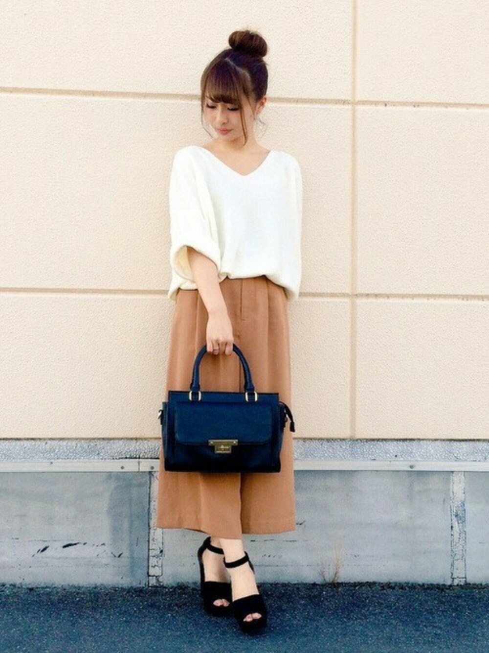 ゆったりめのニットはお袖がワイドで首元もすっきり開いているのでスタイルを華奢に見せてくれ、なんとお家でお洗濯ができちゃう優れもの♪ リラックス感たっぷりのガウチョと合わせて初秋コーデの完成です!