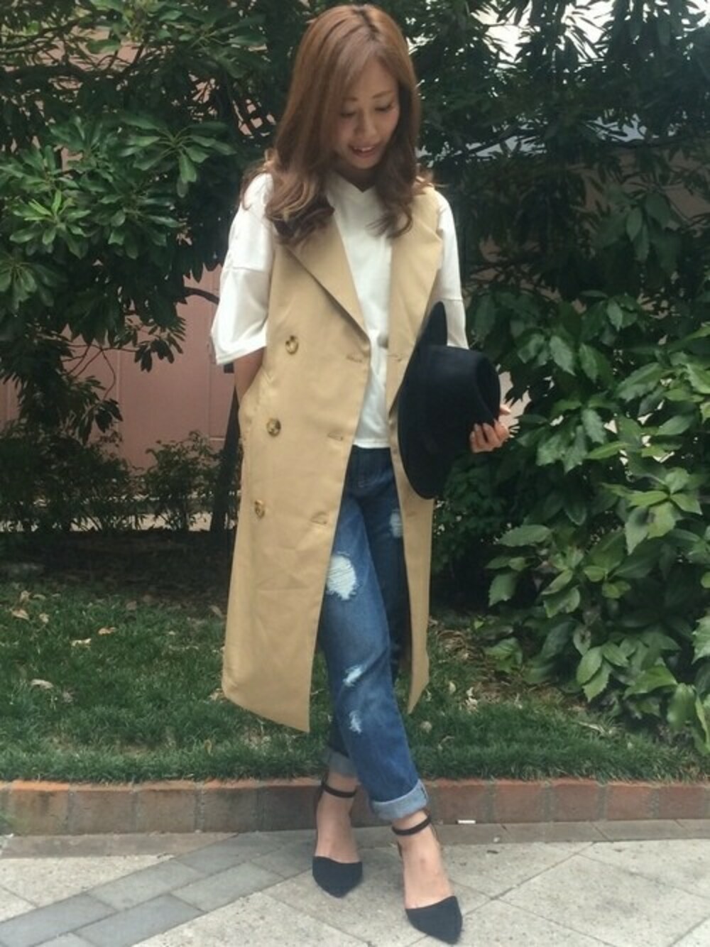 INGNI(イング)(INGNI 東京本社)のトレンチコート「ルーズトレンチ/ベスト-2016AW-」を使ったコーディネート