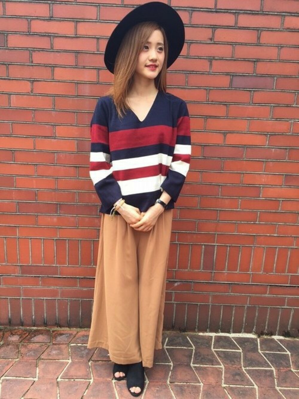 INGNI(イング)(INGNI 東京本社)のニット/セーター「12Gミラノリブ3CボーダーV/ネックニット-2016AW-」を使ったコーディネート