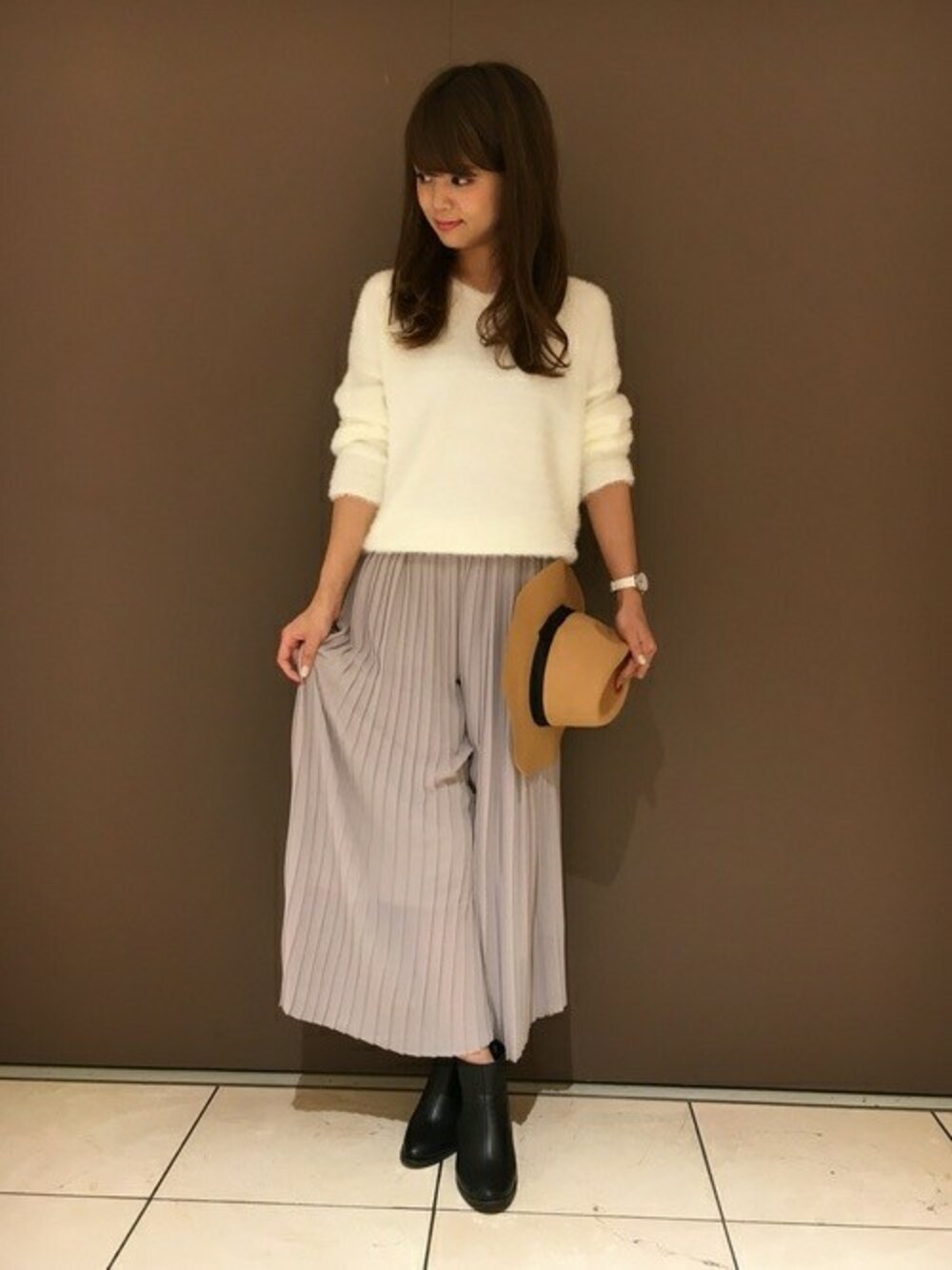 ふわふわとしたニットは今年トレンドです。 ゆったりとしたシルエットですがVネックなので顔まわりをすっきり見せてくれます! ペールトーンでコーディネートしました!
