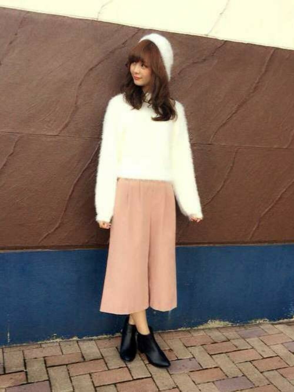 ふわふわとしたフェザーニットは肌触り良く、可愛くて暖かい冬にピッタリのおすすめアイテム*° ピンクのガウチョを合わせて更に女の子らしいトレンドコーデに*°