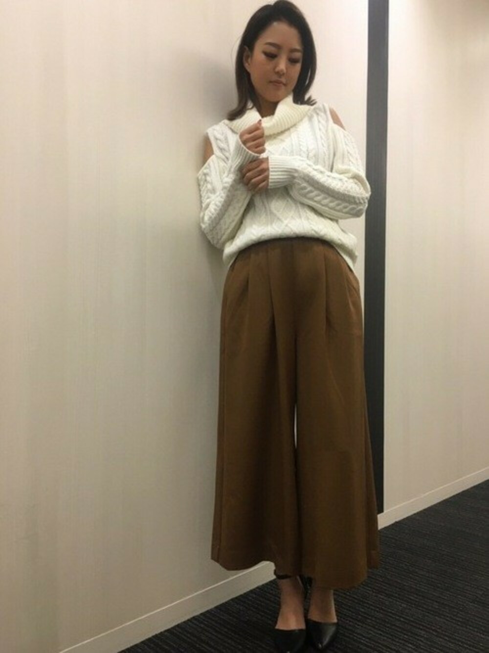 INGNI(イング)(INGNI 東京本社)のニット/セーター「肩あきケーブルオフタートル/レディースニット-2016AW-」を使ったコーディネート