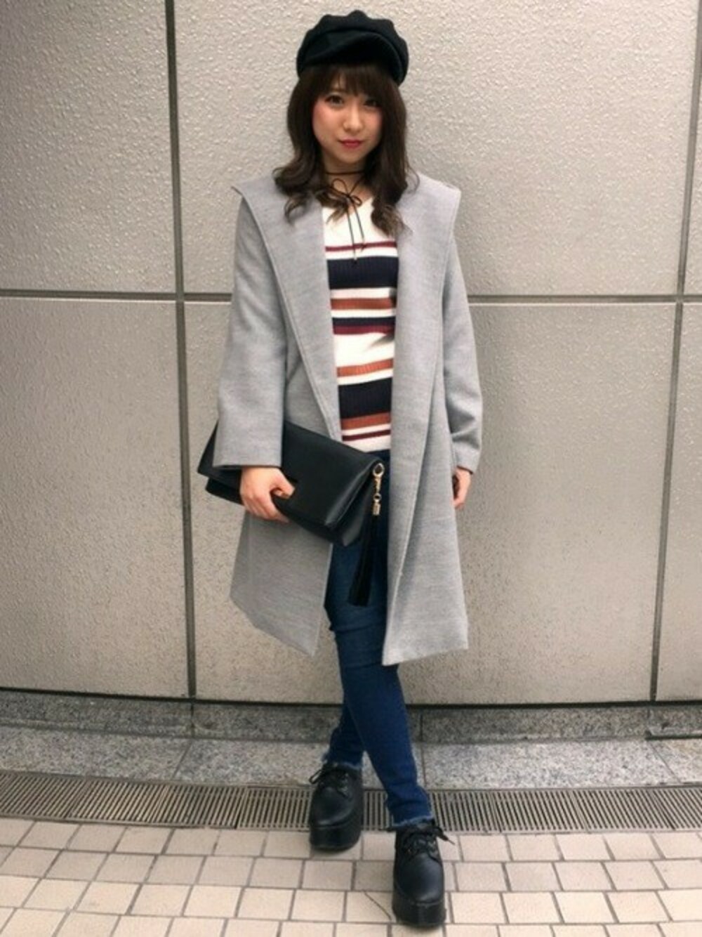ゆったりと羽織れるガウンコートは着やすく、かつ軽いのでおすすめです! マルチボーダートップスとの合わせも良くシンプルだけどオシャレ感がでます!