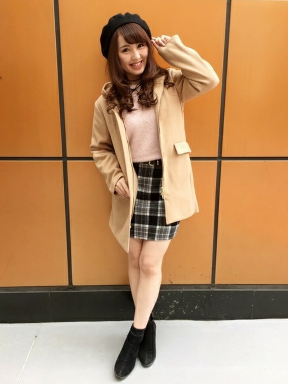 前ZIPのフードコートはどんなコーデにもサラッと合わせられる優れものです! シンプルなデザインでフェザーニット×台形スカートでも子供っぽくならずに着れます♪