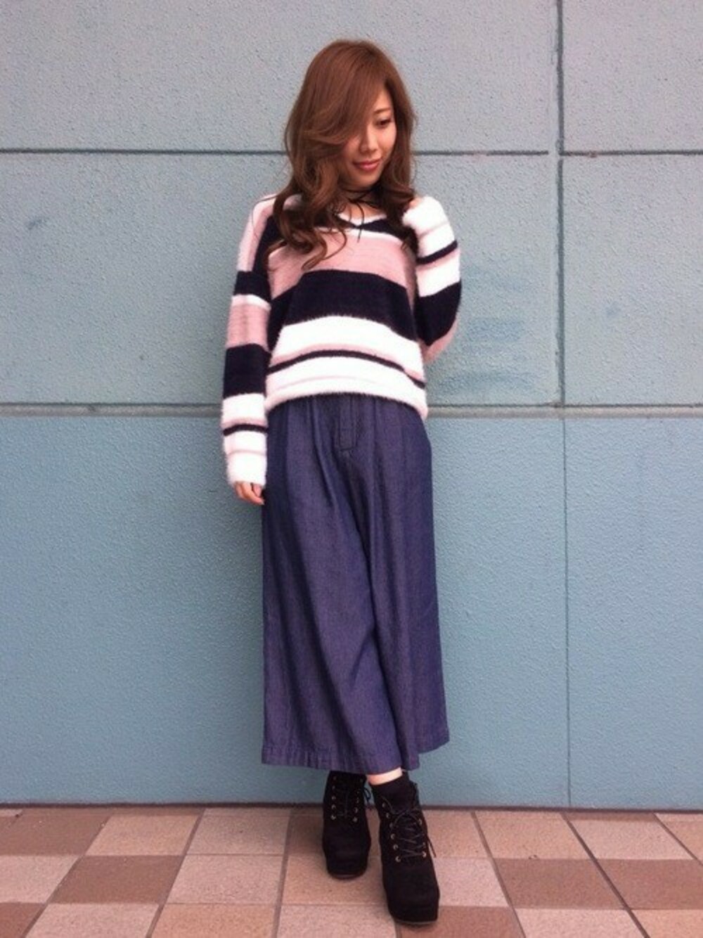 INGNI(イング)(INGNI 東京本社)のニット/セーター「フェレットフェザーマルチボーダーVネックニット/レディース-2016AW-」を使ったコーディネート