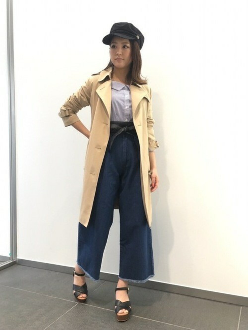 ベーシックなデザインで幅広く使えるトレンチコート。 今季トレンドのワイドデニムと相性抜群です★