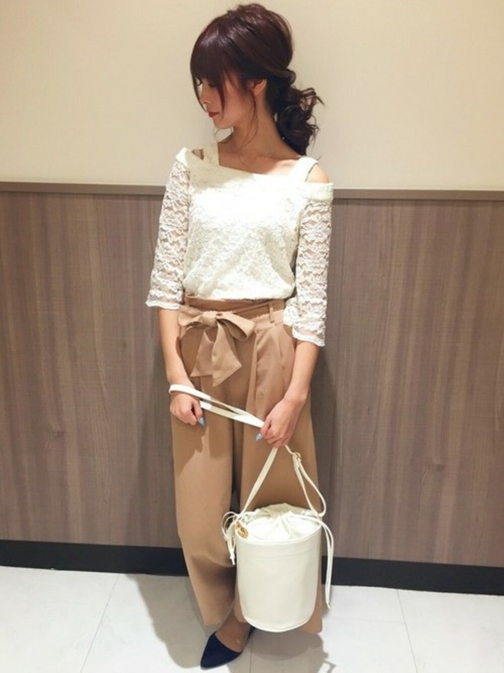 INGNI(イング)(INGNI 東京本社)のTシャツ/カットソー「肩開きオフショルダーレーストップス/レディース-2017SS-」を使ったコーディネート
