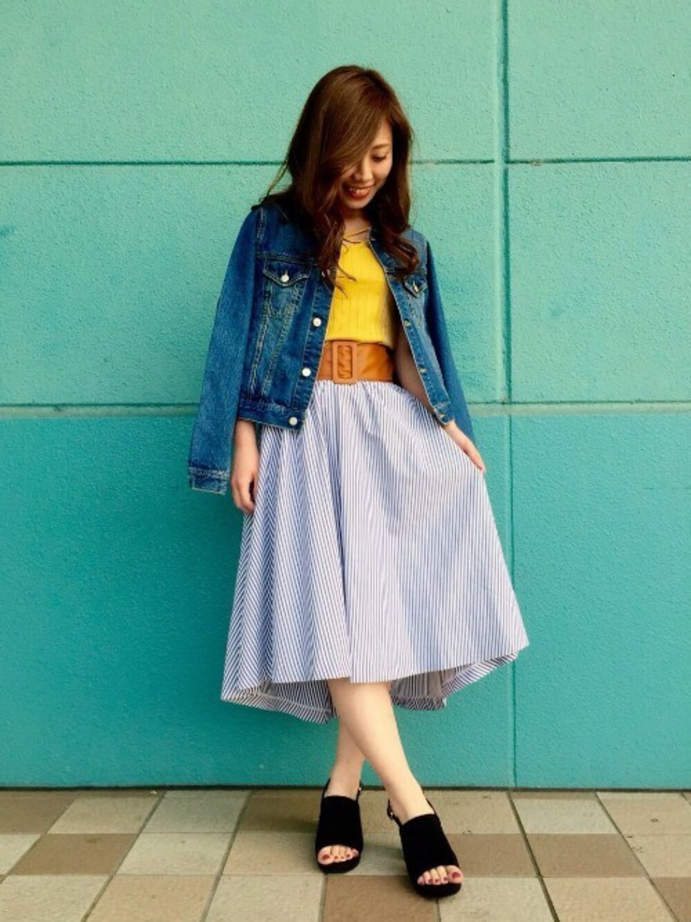 フロントのクロスデザインがポイント☆ 前後2WAYで着れるので、お洋服に合わせて着回しできます! マスタードカラー×ストライプで、こなれた印象に!