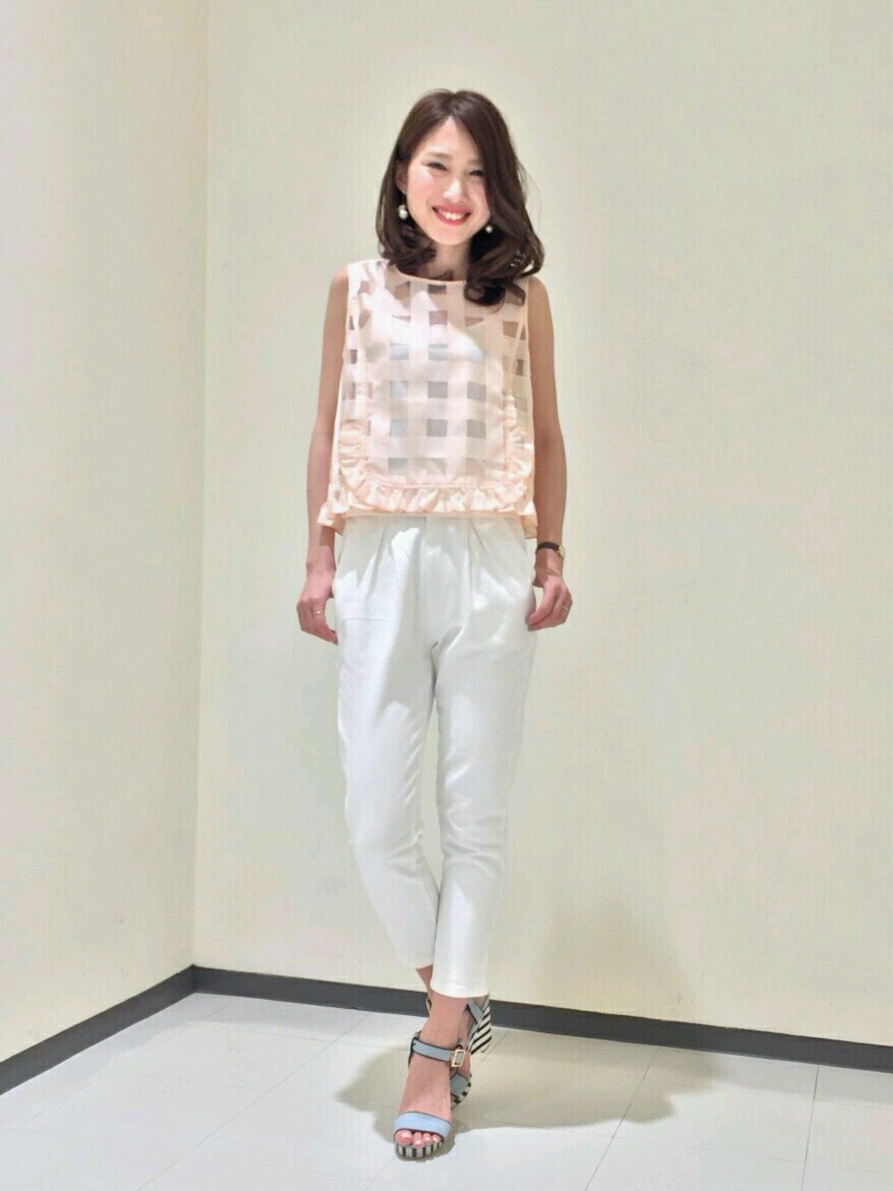 新作のギンガムチェックブラウスは ホワイトデニム合わせで大人めの着こなしも♡