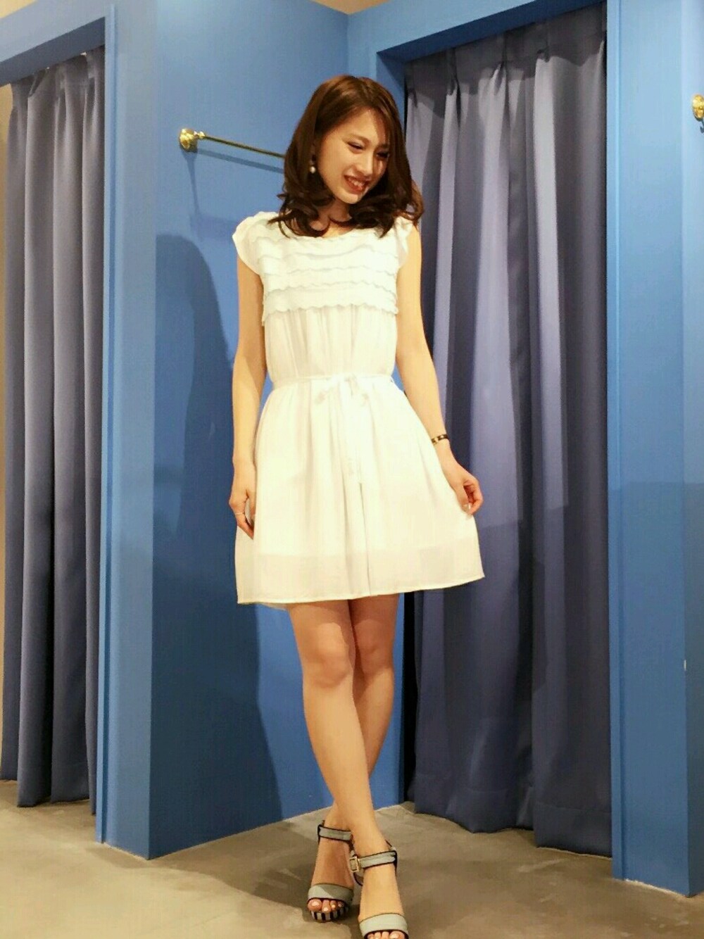 ISBITのワンピース「スカラップフリルワンピース」を使ったコーディネート