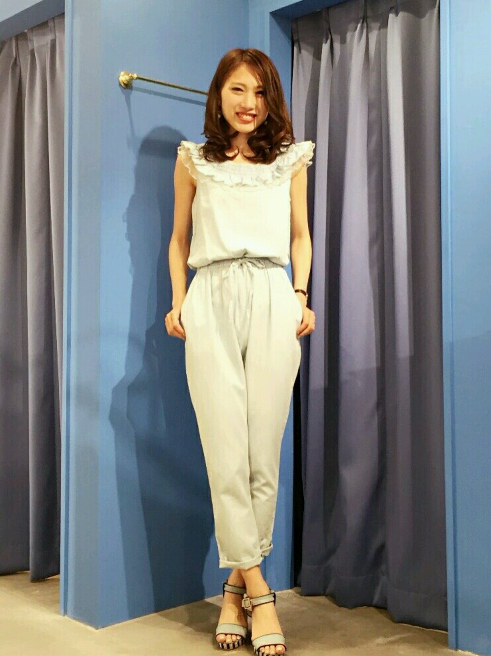 ISBITのつなぎ/オールインワン「チュールフリルオールインワン」を使ったコーディネート