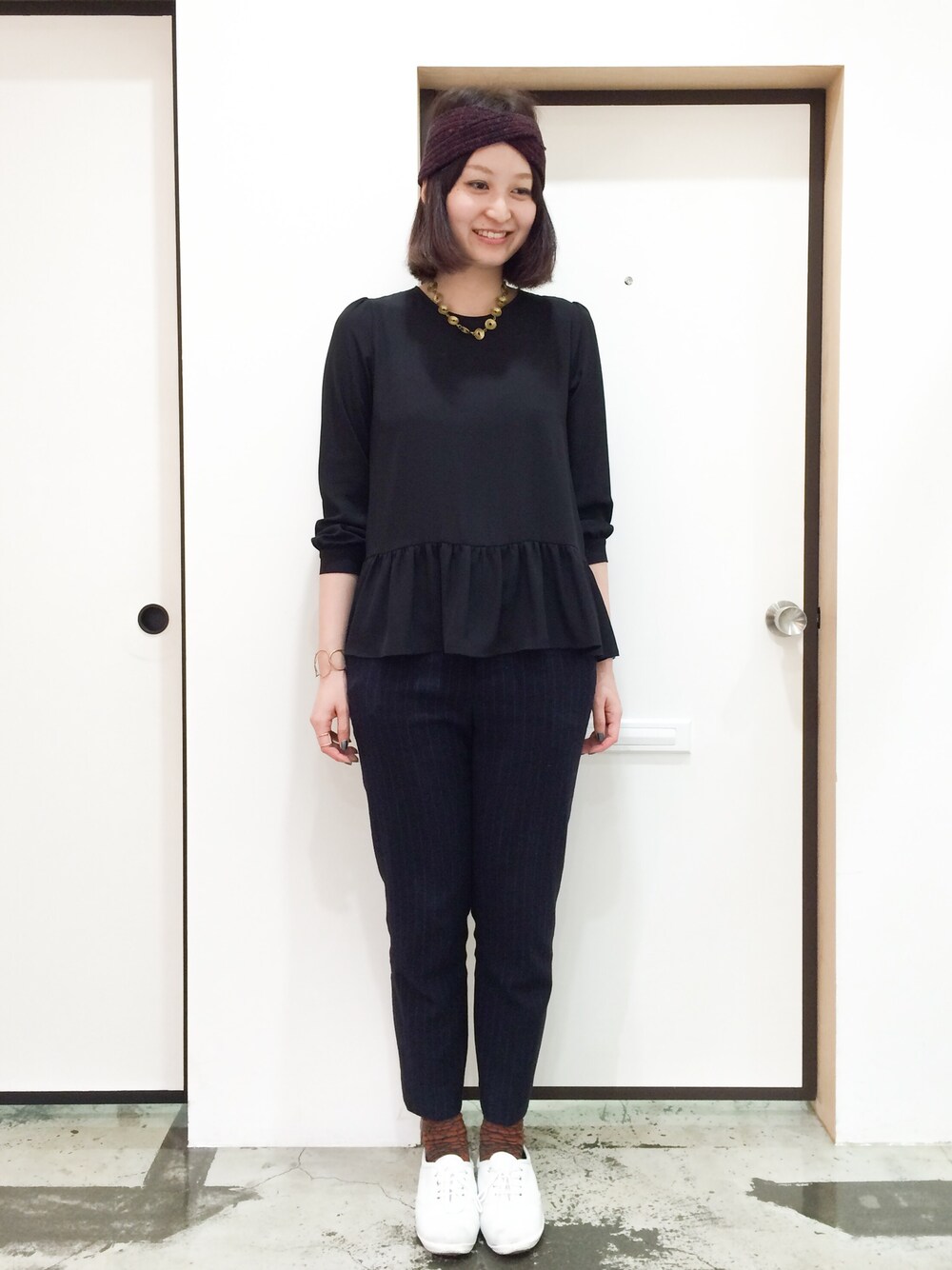 シックな色合いでまとめた大人なコーディネート。 ヘアバンドでスッキリとさせています。