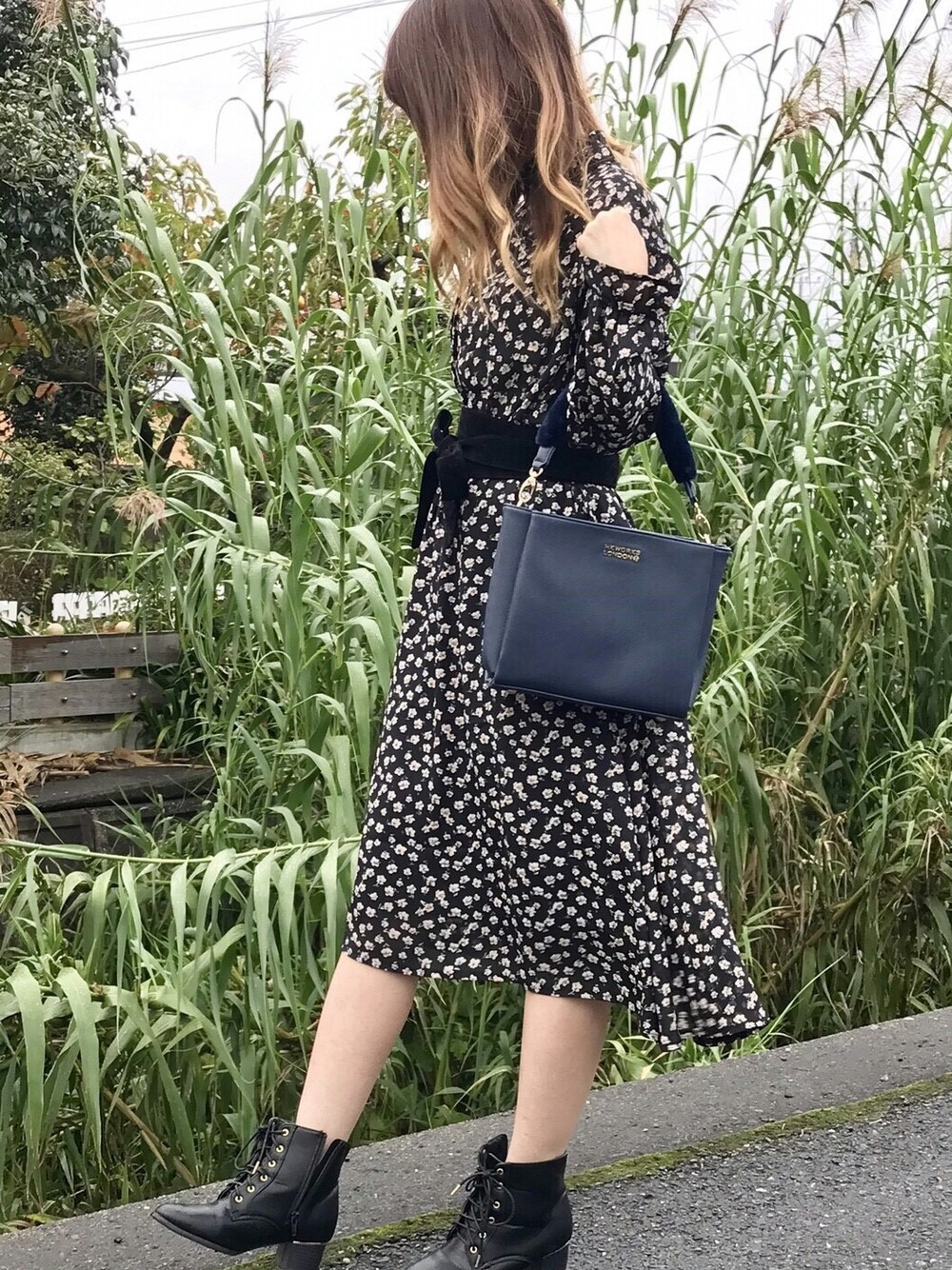 JANISS STAFFのワンピース「花柄ハイネックロングOP」を使ったコーディネート