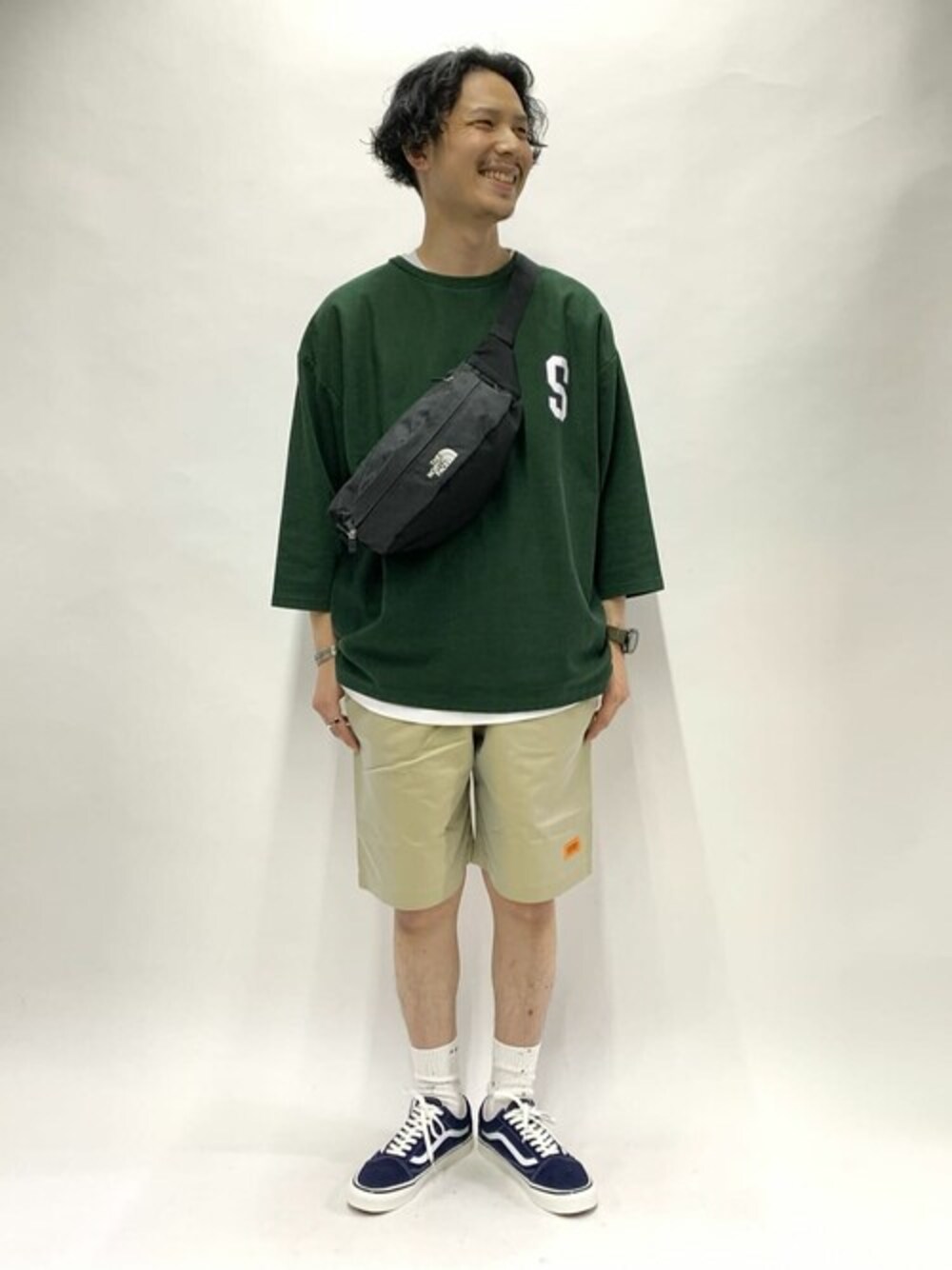 JEANS FACTORY CLOTHESのヘビーウェイトカレッジTEEが入荷したのでスタイリングしてみました。 しっかりしたヘビーウェイトの生地感とカレッジロゴのプリントが魅力的な1枚です。7分袖なので晩夏から秋口まで活用できます。7分袖とショーツのバランスが個人的に好きなポイントです。 VANSのオールドスクールも新色になります。 綺麗なネイビーがコーディネートを引き締めてくれます。