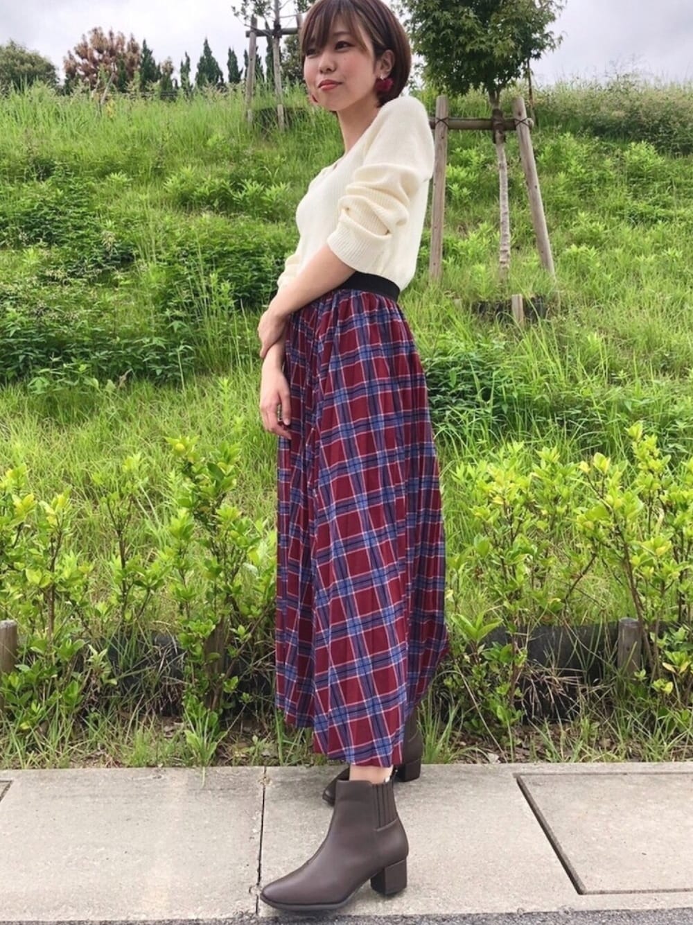 秋のブーツコーデ★ カラフルなチェック柄スタイルが、オークベージュのブーツでこなれた印象に。 ららぽーとEXPOCITY店staff