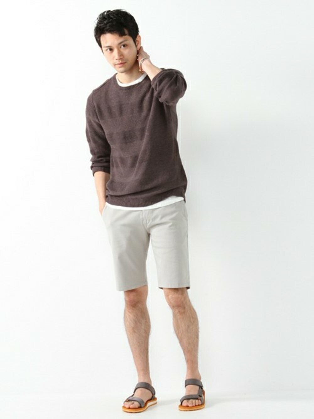 ストレッチ素材の涼しげショーツに、今年も大人気のサンダルでサマー感を演出したスタイリングです。