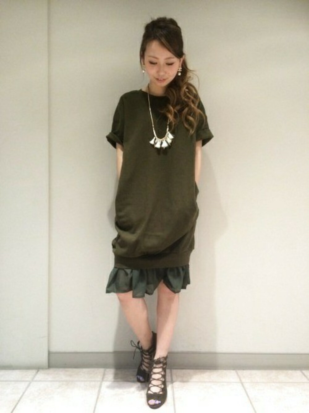 ざっくり着やすいワンピースの 入荷です! 足元で統一感をだしたことによって 全体的にまとまりラフな印象に(^○^)