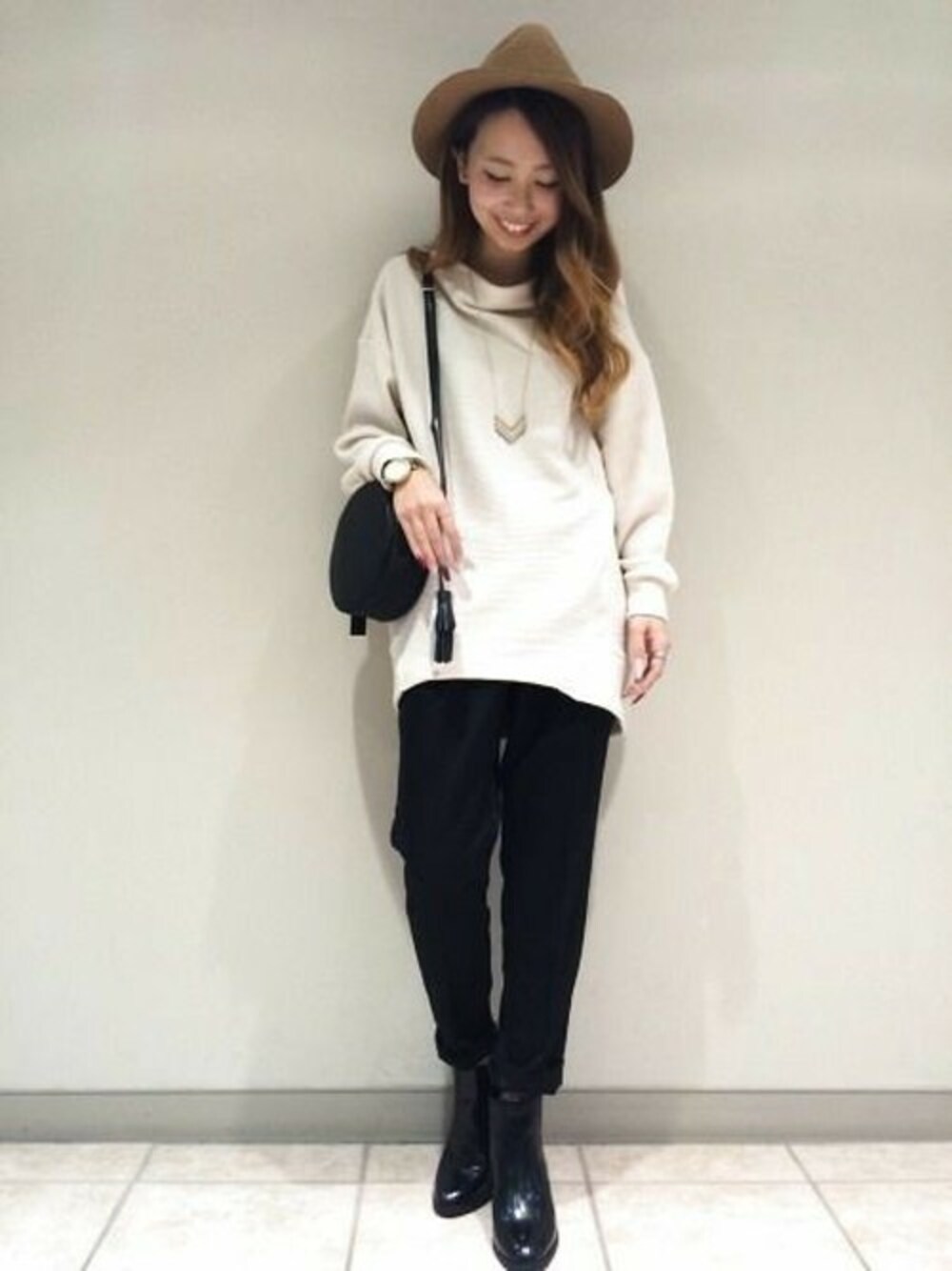 お尻がすっぽり隠れる長さの トップスです!! 形がオシャレなので あえて他はシンプルに☆☆