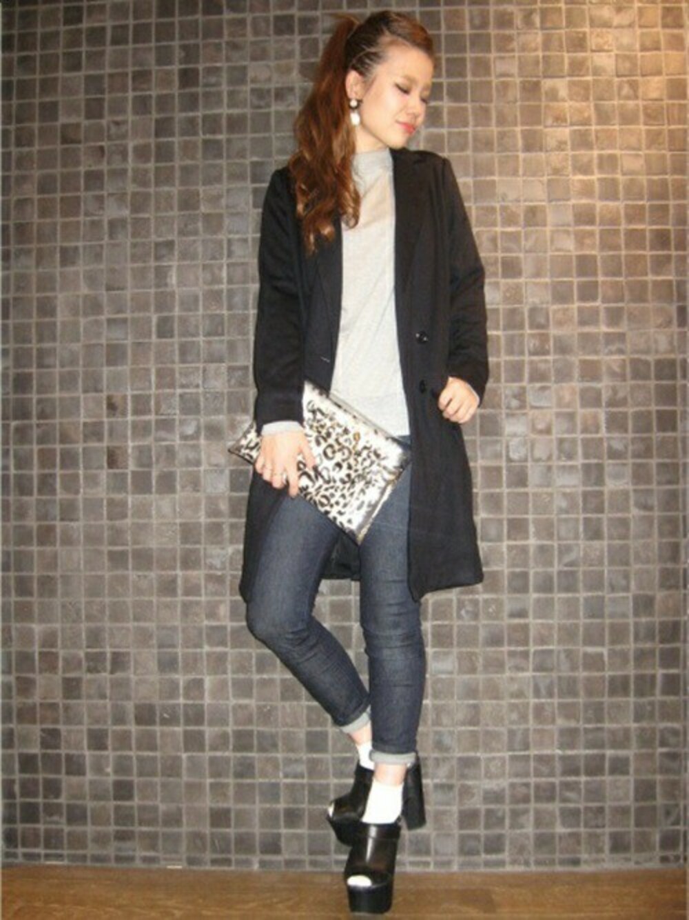 ●モノトーンコーディネート● ロング丈のチェスターがキマりすぎないように ウラケやデニムを合わせてカジュアルに♪ バッグのレオパードで遊びをプラスしてみました♪