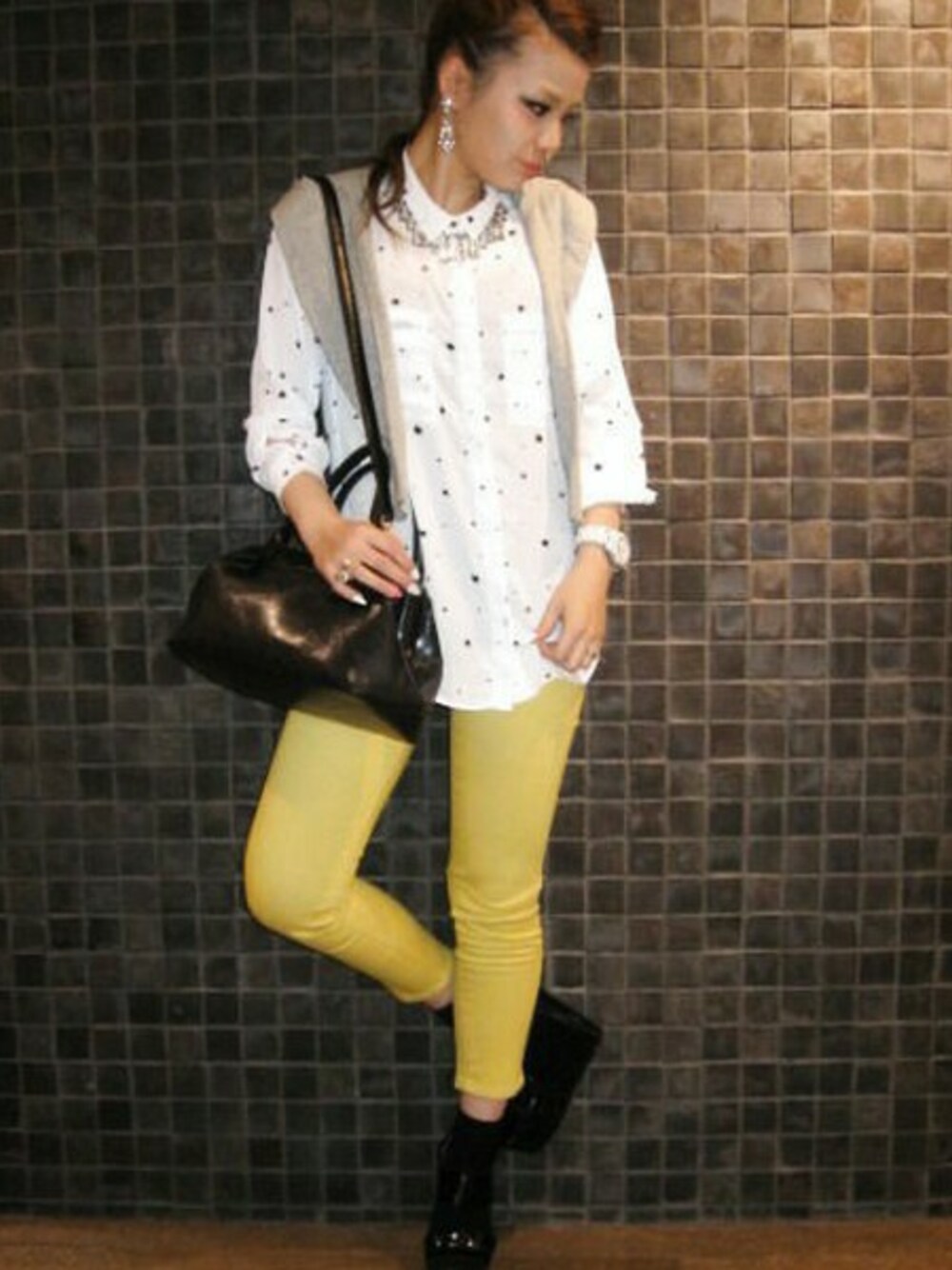 イエローのパンツをポイントに 小物でバランスを取りました★ モノトーン×カラーパンツは、 コーディネートしやすくオススメです!!