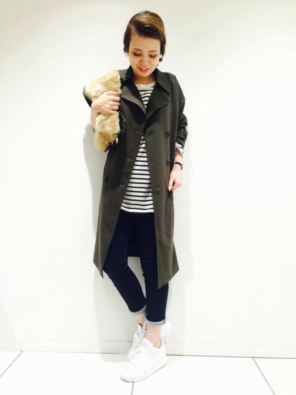 今日は、カジュアルに スキニー×スニーカーの気分♬ ロング丈アウターは着やせ効果の 強い味方です☆☆☆