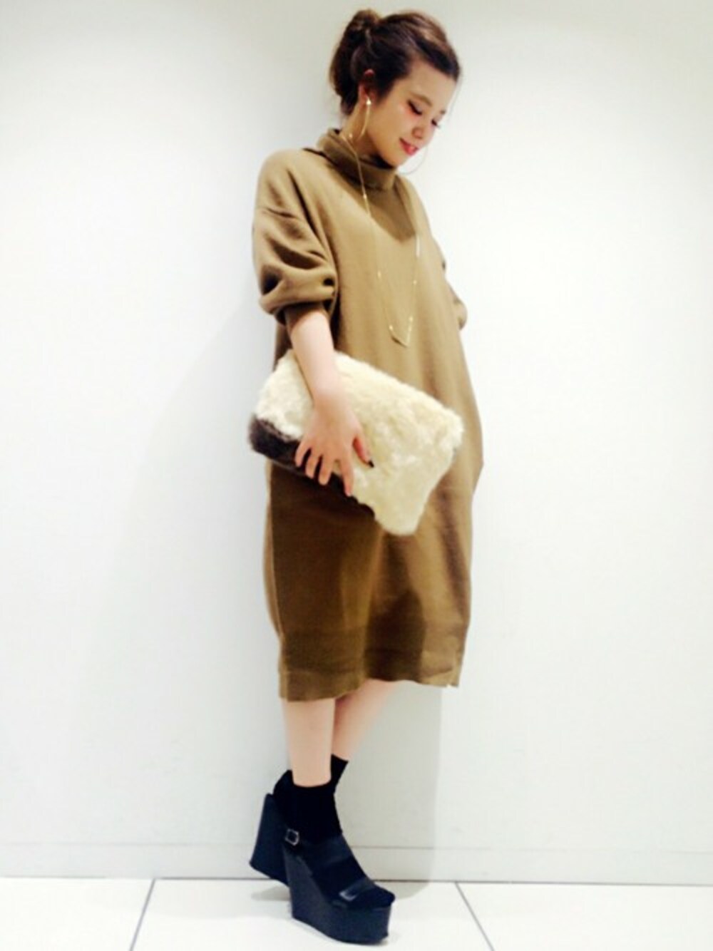 今日は、モチモチ素材が 気持ち良いワンピースをメインに コーディネートしました☆ 重くならないように 髪をまとめてバランスを取るのが ポイントです!!!