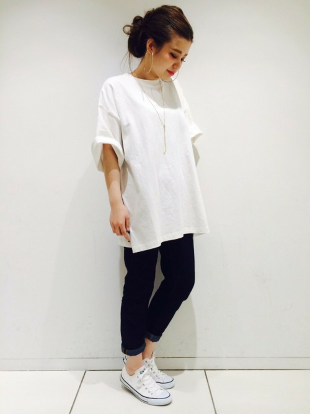 メンズよりなビッグシルエットは 今年のマストデザイン☆ カジュアルなコーデに ゴールドアクセを合わせて 女性らしさをプラスしました♡