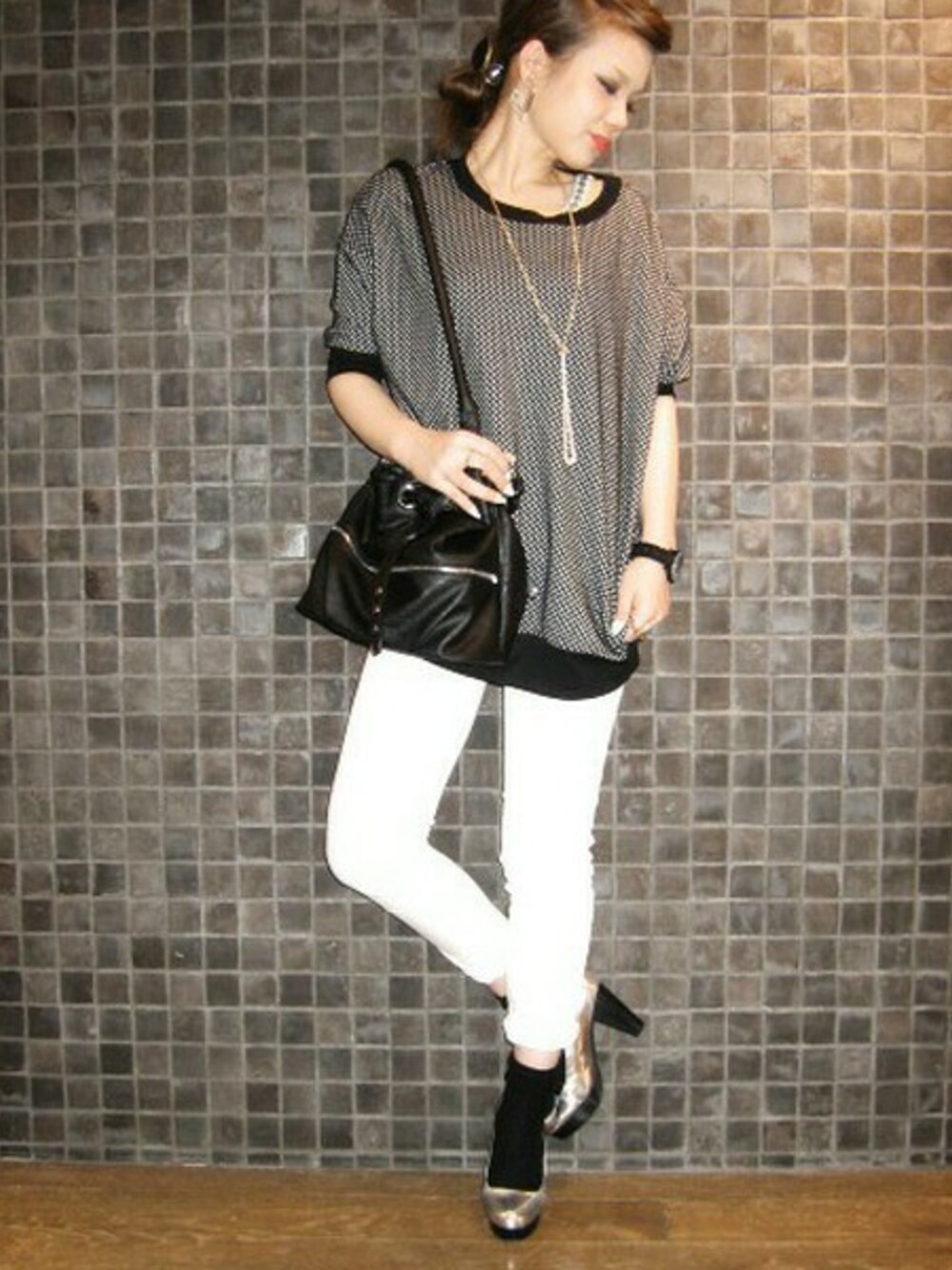 モノトーンコーディネート★ 膨張しがちな白スキニーも ヒールや色味で バランスを取るとスッキリ◎
