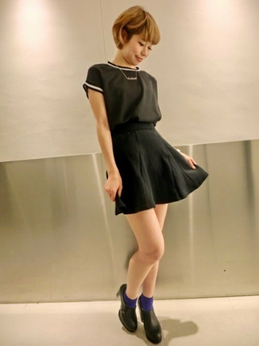 同色のトップスとスカートでワンピース風にコーデ★ トップスのシルバーラメのラインがアクセントになっています!!