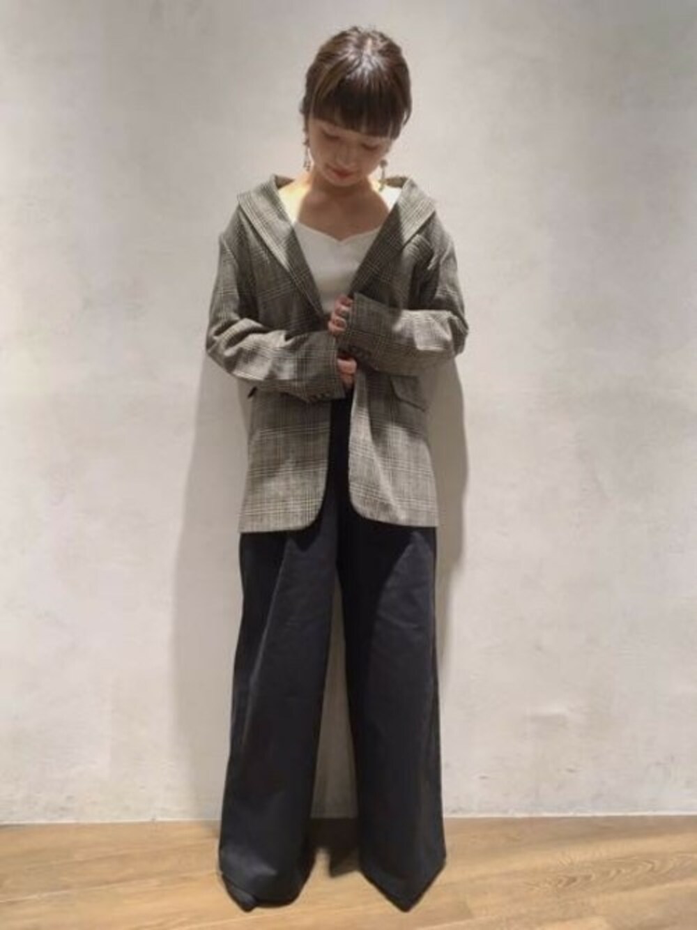 チェック柄ジャケットはさらっと羽織るだけで一気に秋モードに◎ 王道のテーラードタイプは長く愛用できて、 さらに衿抜きすると今年らしく着こなせます♪