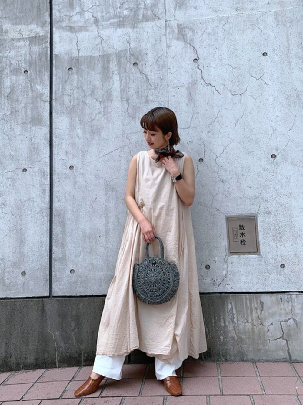 インド綿を使用した、夏にぴったりのワンピース。 途中から広がる裾のシルエットがとっても綺麗です! わたしはカジュアルスタイルが好きなので、 ホワイトデニムを中に入れてレイヤードスタイルにしました☆