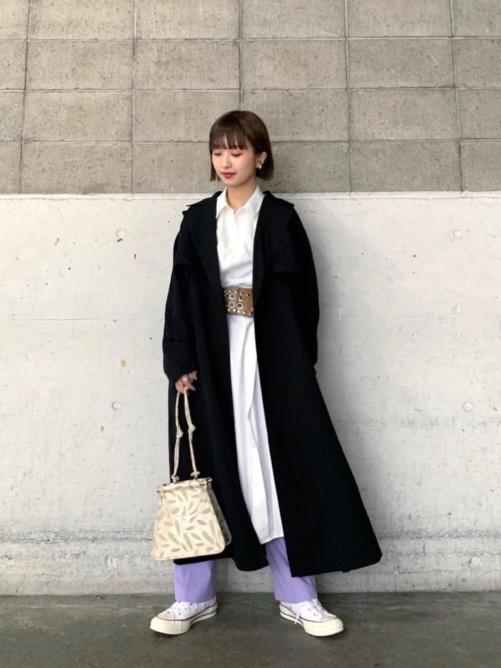 インスタ → mari.yama.0203 ロングのシャツワンピの上には ロングのトレンチコートを☆ 縦長ラインが強調されて、背が高く見えます♡