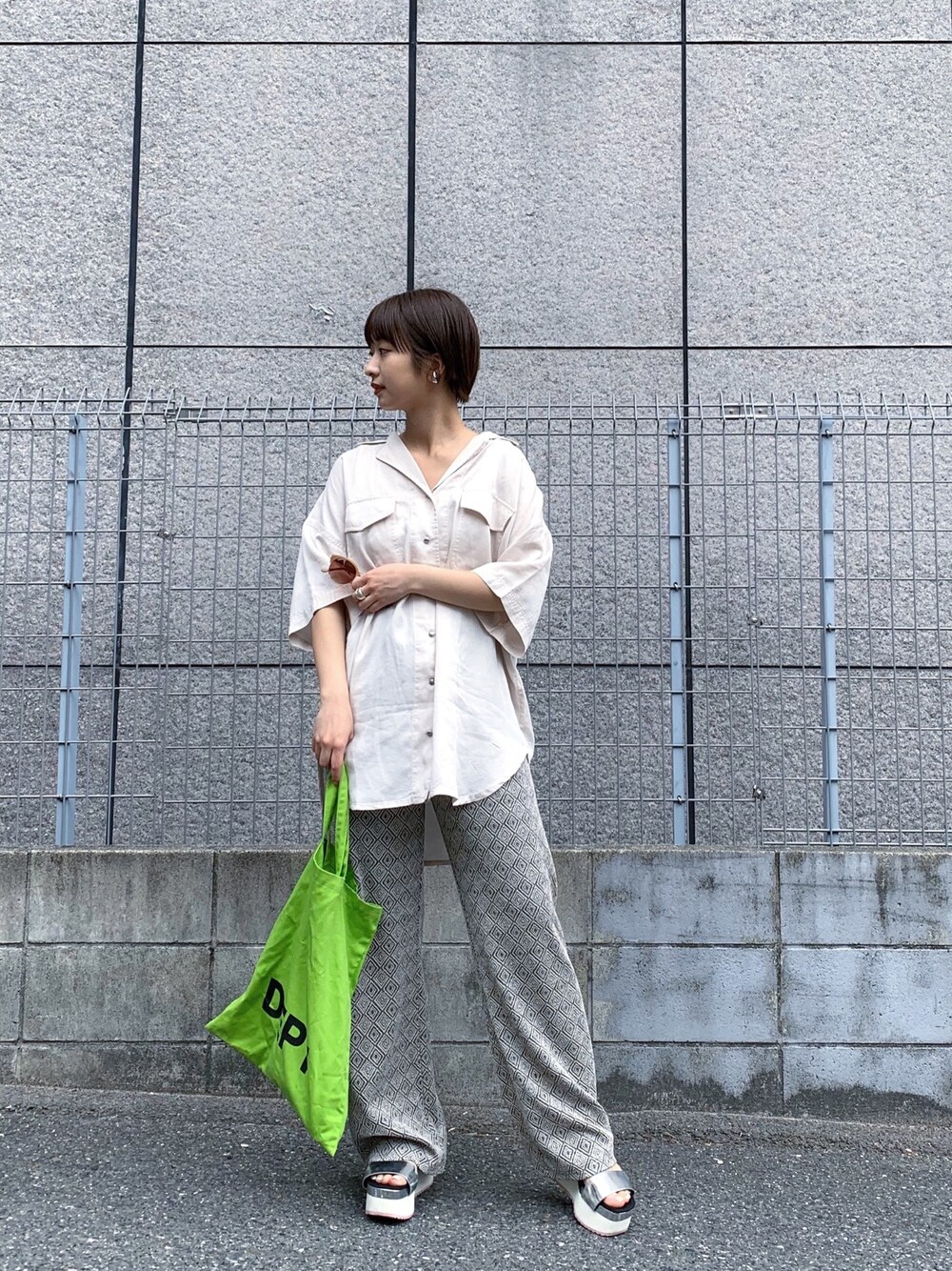 インスタID mari.yama.0203 スーパー行くコーデ🍃 お気に入りのエコバックで😊