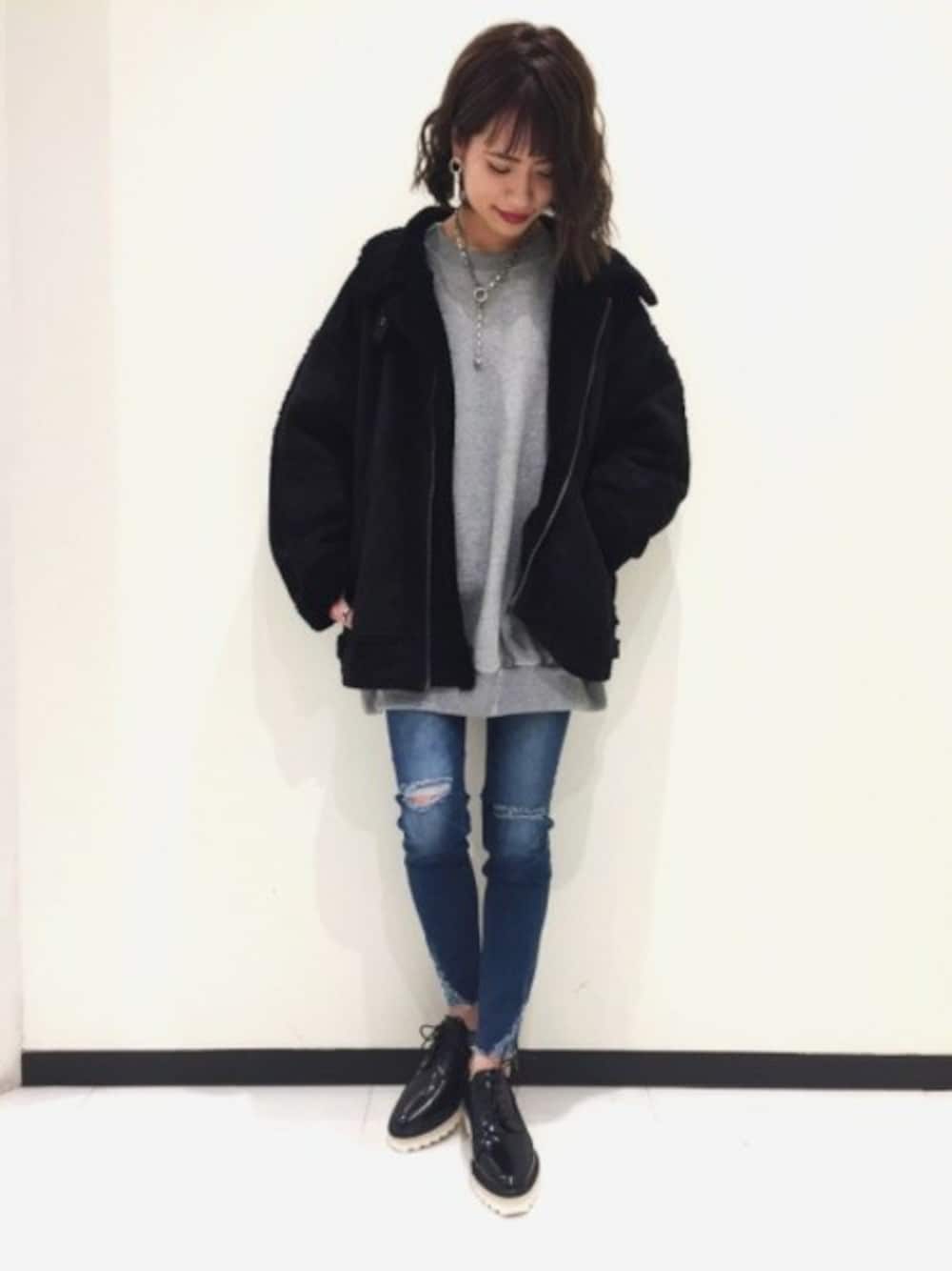 オーバーサイズのゆるスウェットは B-3とデニムスキニーで合わせて メンズライクなカジュアルコーデに☆