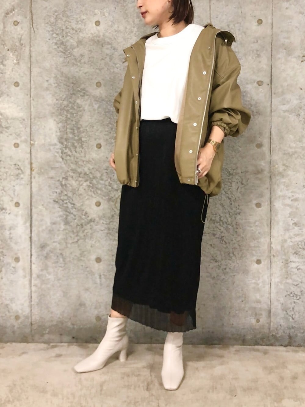 レザーマンパがアップデート★ 今年は2色でベージュ推し! 裾を絞って丸みのあるシルエットにすると女性らしくて◎