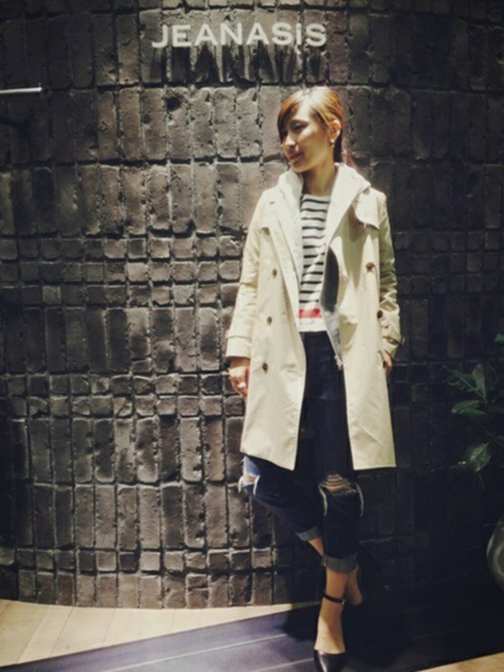 長く使えるベーシックなトレンチコートを使った定番コーデ★ ビビッドなラインを効かせたボーダーやクラッシュデニムで今年らしさをプラスしました!