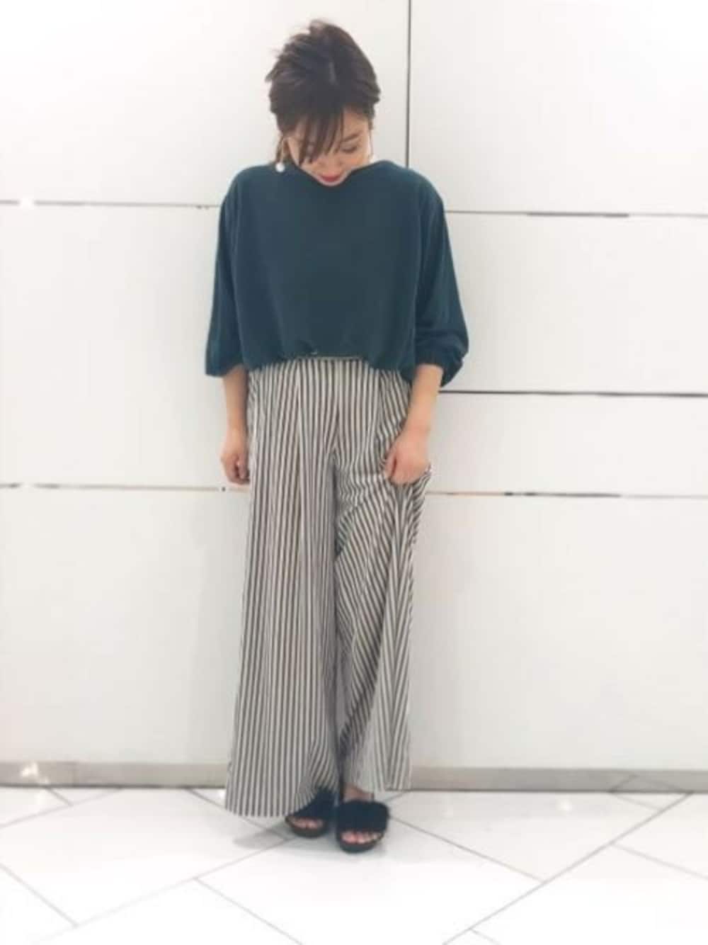 着るだけで秋を先どりしてくれるディープグリーン。 上品な色味は肌なじみも良く着やすいです! ベロア素材のパンツを合わせてゆるっとまとめました♪