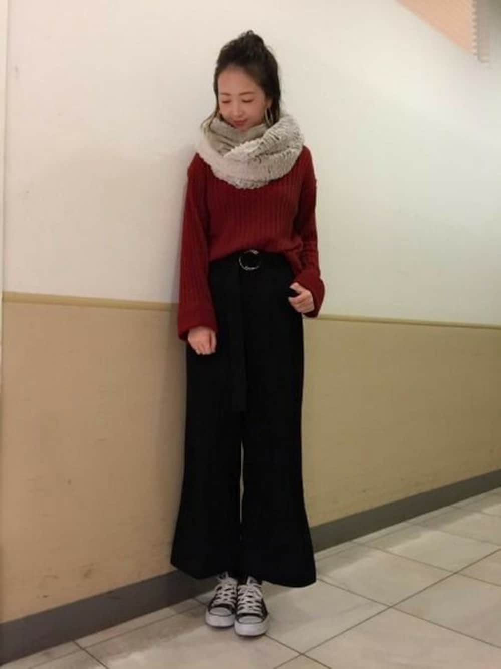 肌触り抜群の赤ニットです^^ コンパクトなのでスヌードでボリューミーさを出して 更に存在感を☆