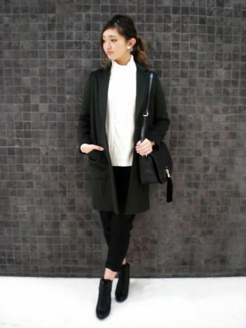 綺麗めなチェスターコートにはハイネックのケーブルで女性らしさをプラス!