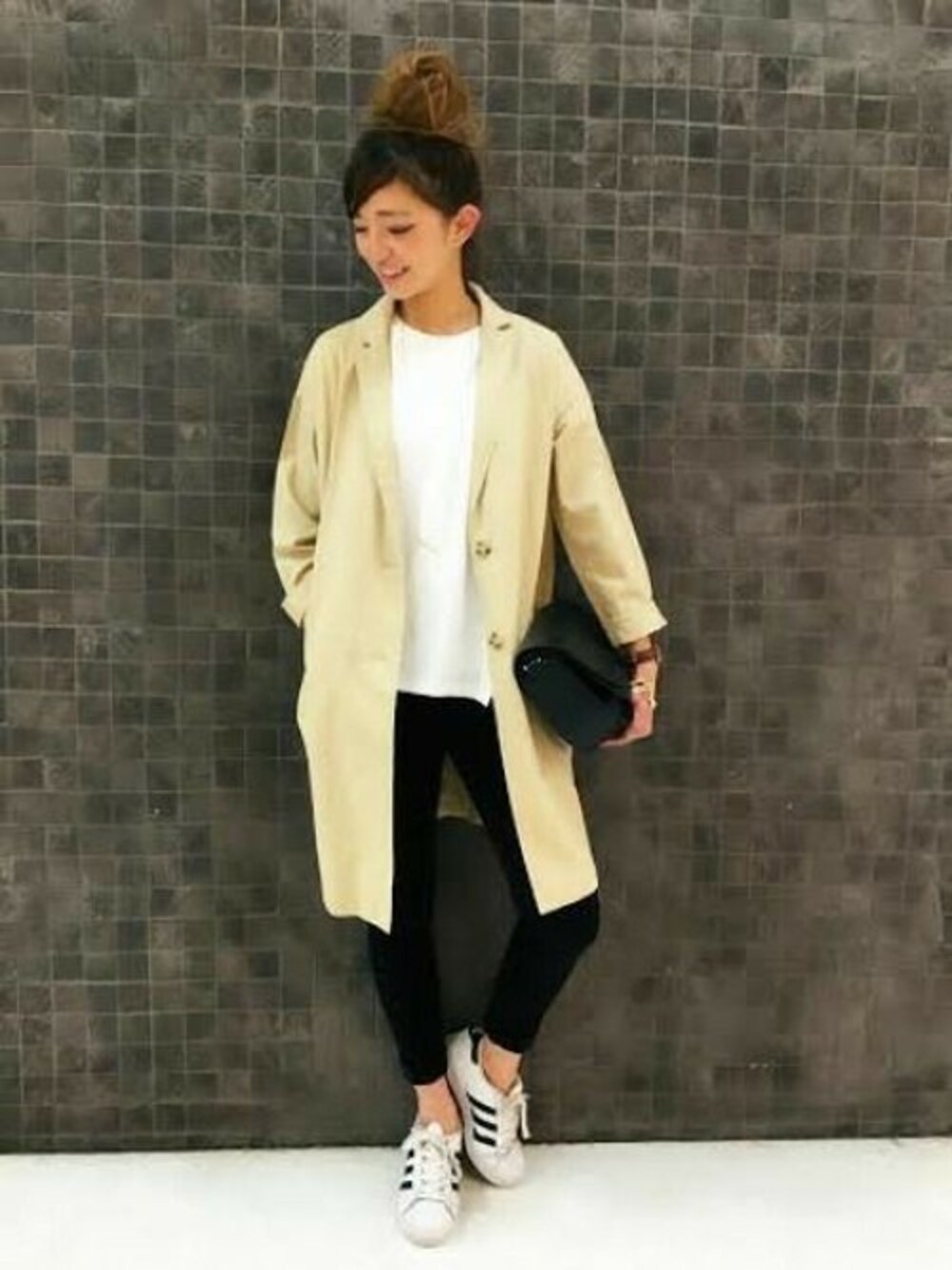 フロント部分が重なっているお洒落なデザインのカットソーは今すぐ使える春夏素材のジャケットと合わせてシンプルに☆今すぐ真似していただけるコーディネートです!