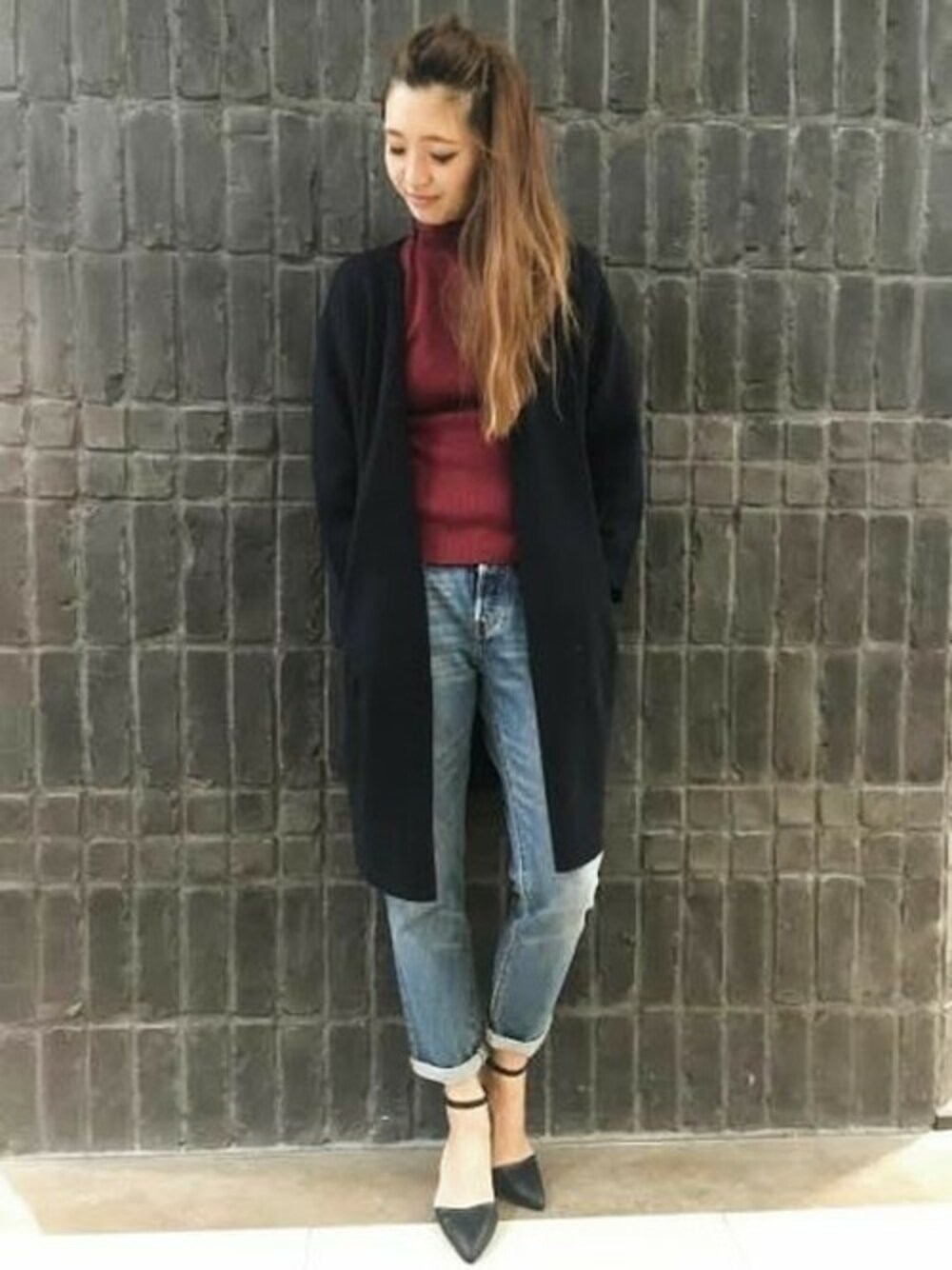 ボルドーをポイントにした大人カジュアルの完成★ ロングコーディガンはこの時期にぴったりのアイテムです!!