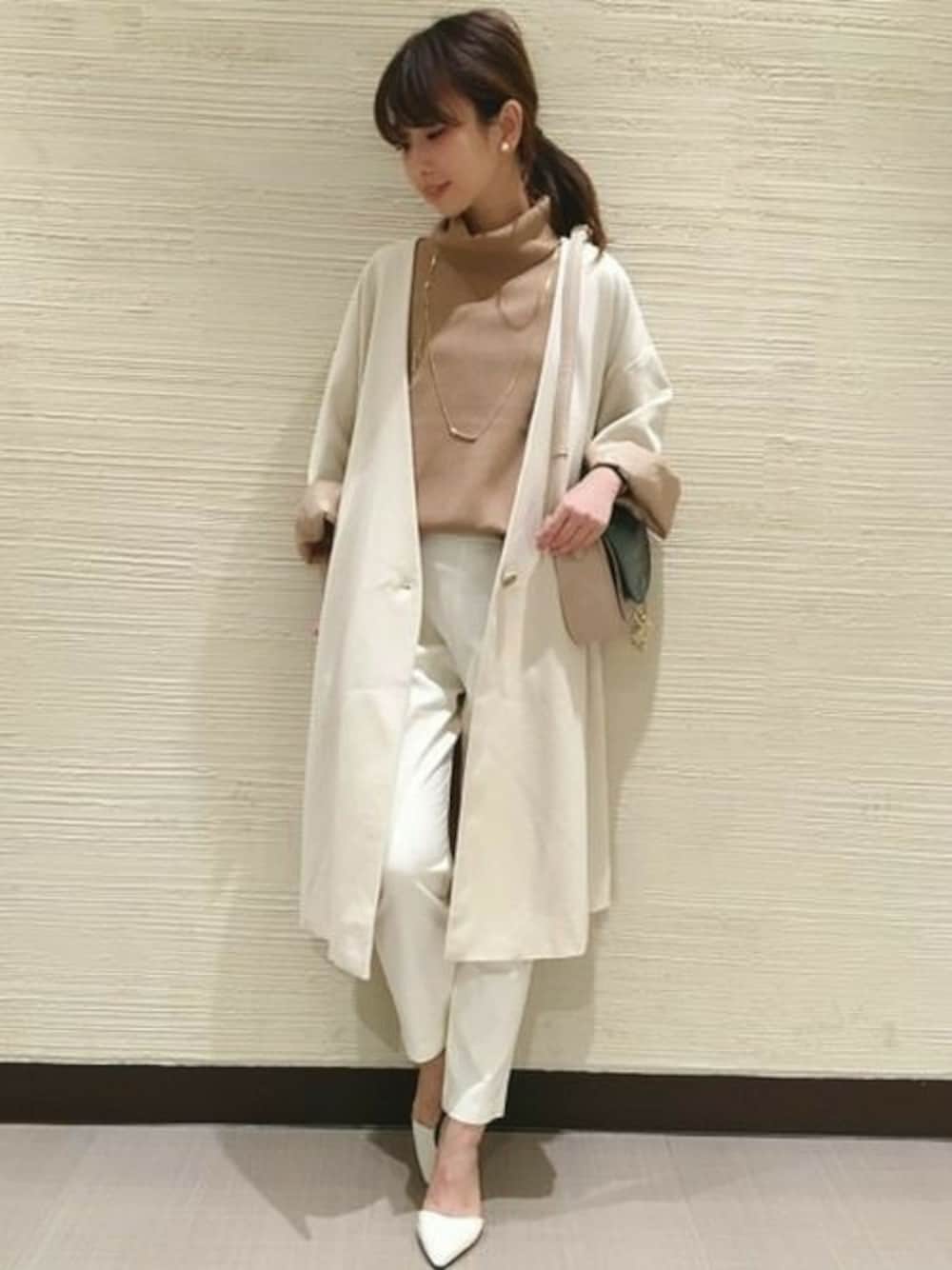 ホワイトコーデにベージュをプラスして、 女性らしく☆★☆ コーディガンは、もはや定番アイテムです♪♪