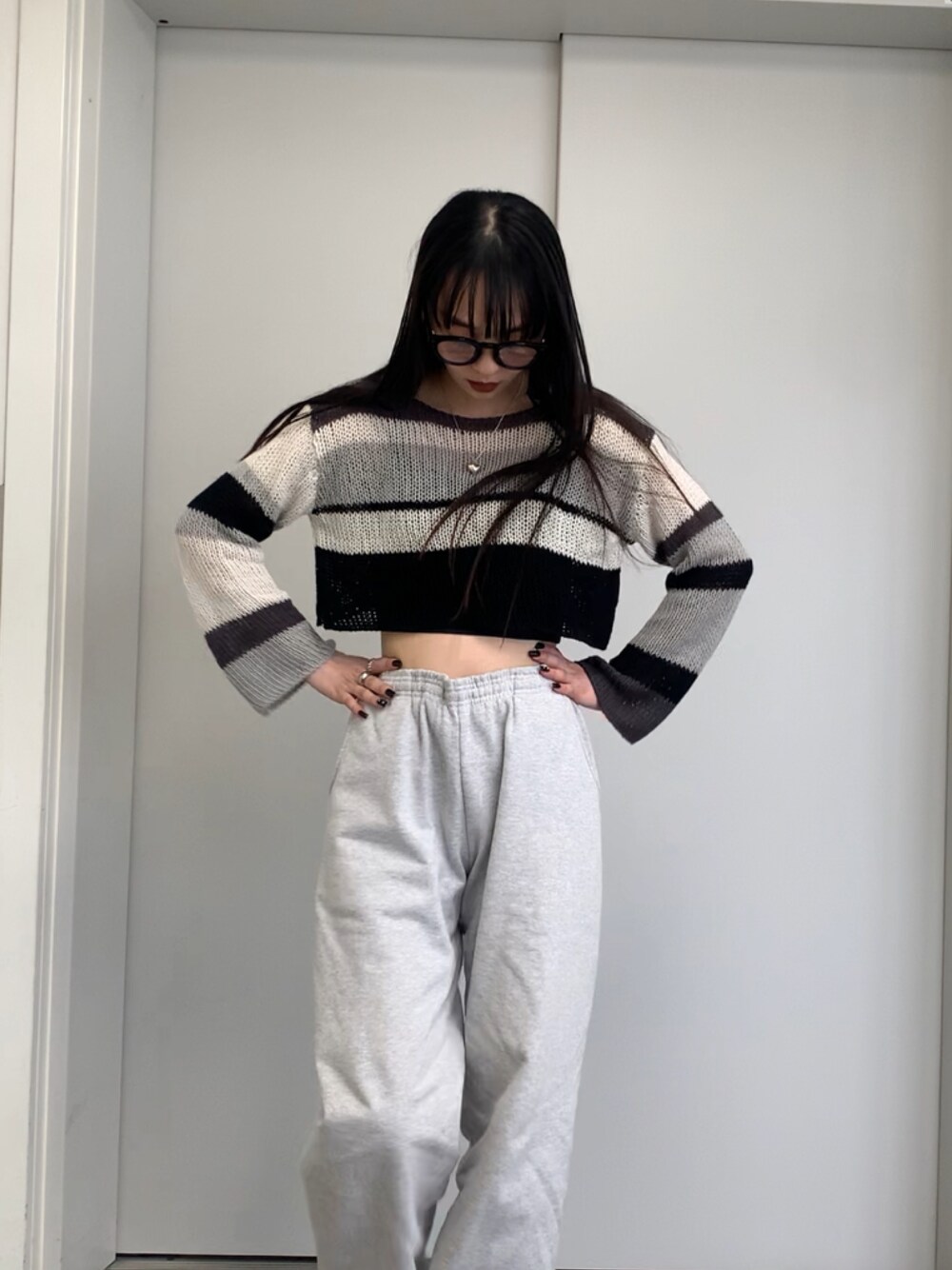 ブラック系のニット/セーターを着用したレディースの春コーディネートの1枚目の写真
