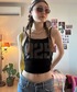 ブラック系のキャミソールを着用したレディースの夏コーディネートの1枚目の写真