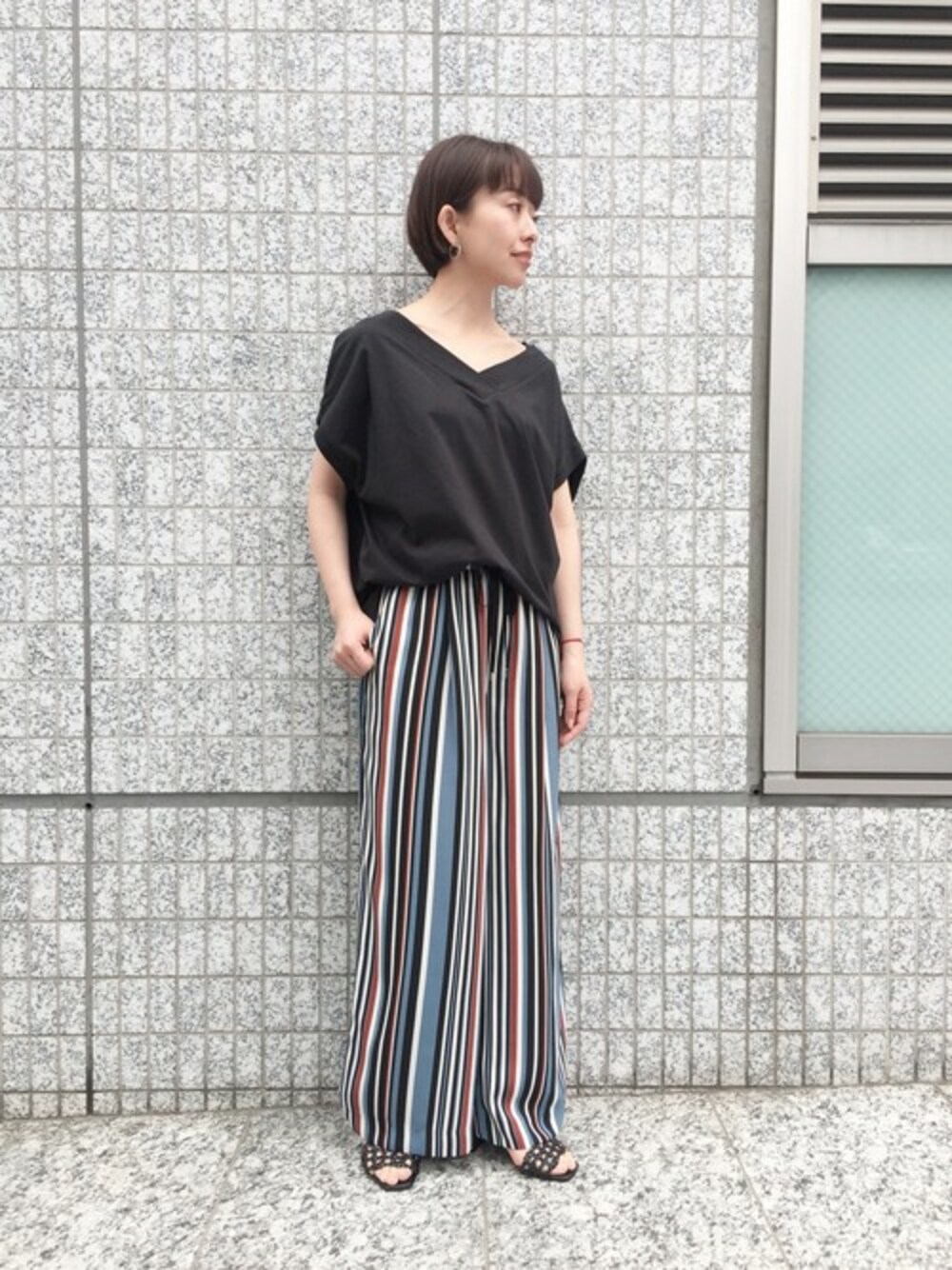 存在感のあるストライプイージーパンツは 夏らしくゆるめのTシャツと合わせたリラックスコーデが気分!