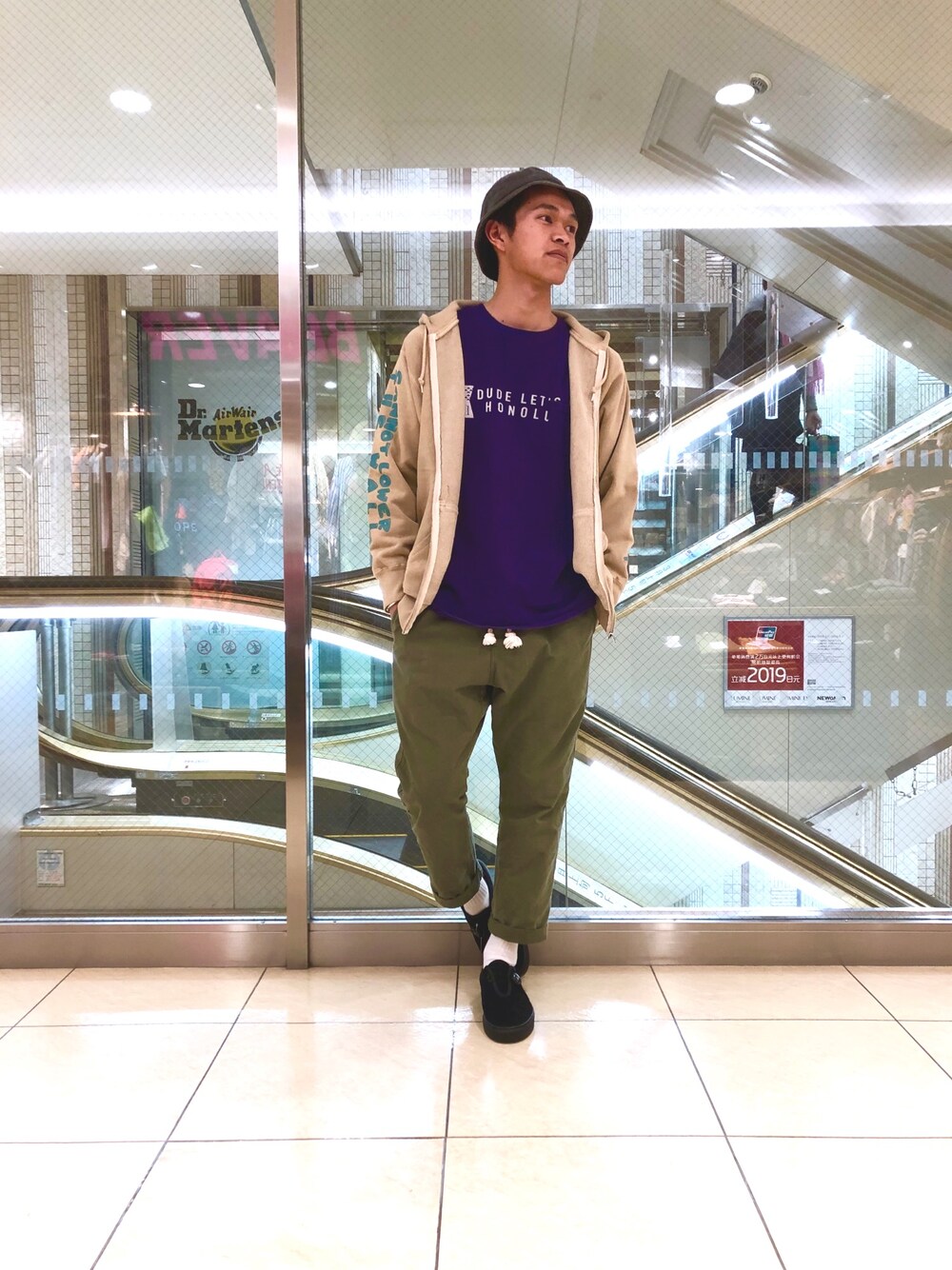 小野 隼ノ介のパーカー「AlexanderLeeChang × Gramicci/アレキサンダーリーチャン × グラミチ PIGMENT DYE ZIP PARKA/ピグメントダイジップパーカー」を使ったコーディネート