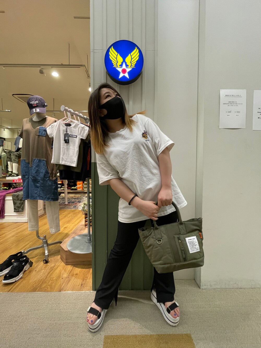 髙田樹音のトートバッグ「【直営店限定】2ウェイキルティングミニトートバッグ/ 2WAY QUILTING MINI TOTE BAG/アヴィレックス/AVIREX」を使ったコーディネート