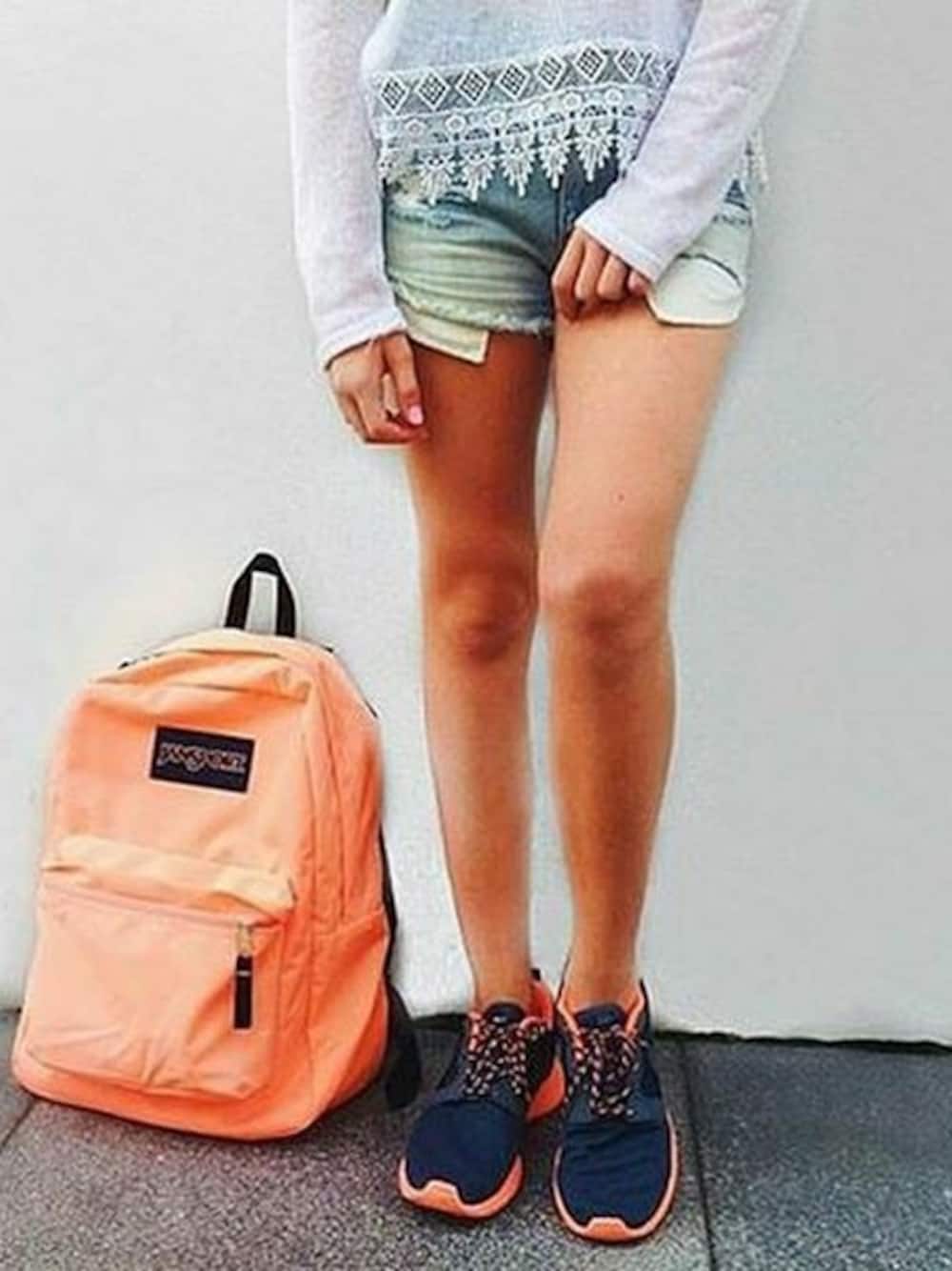スニーカーとリュックのカラーを合わせてみました。 カジュアルだけどかわいらしさも残した、スポーティなコーディネートが完成! ジャンスポはカラバリが豊富なので、こうした色合わせが楽しめます。