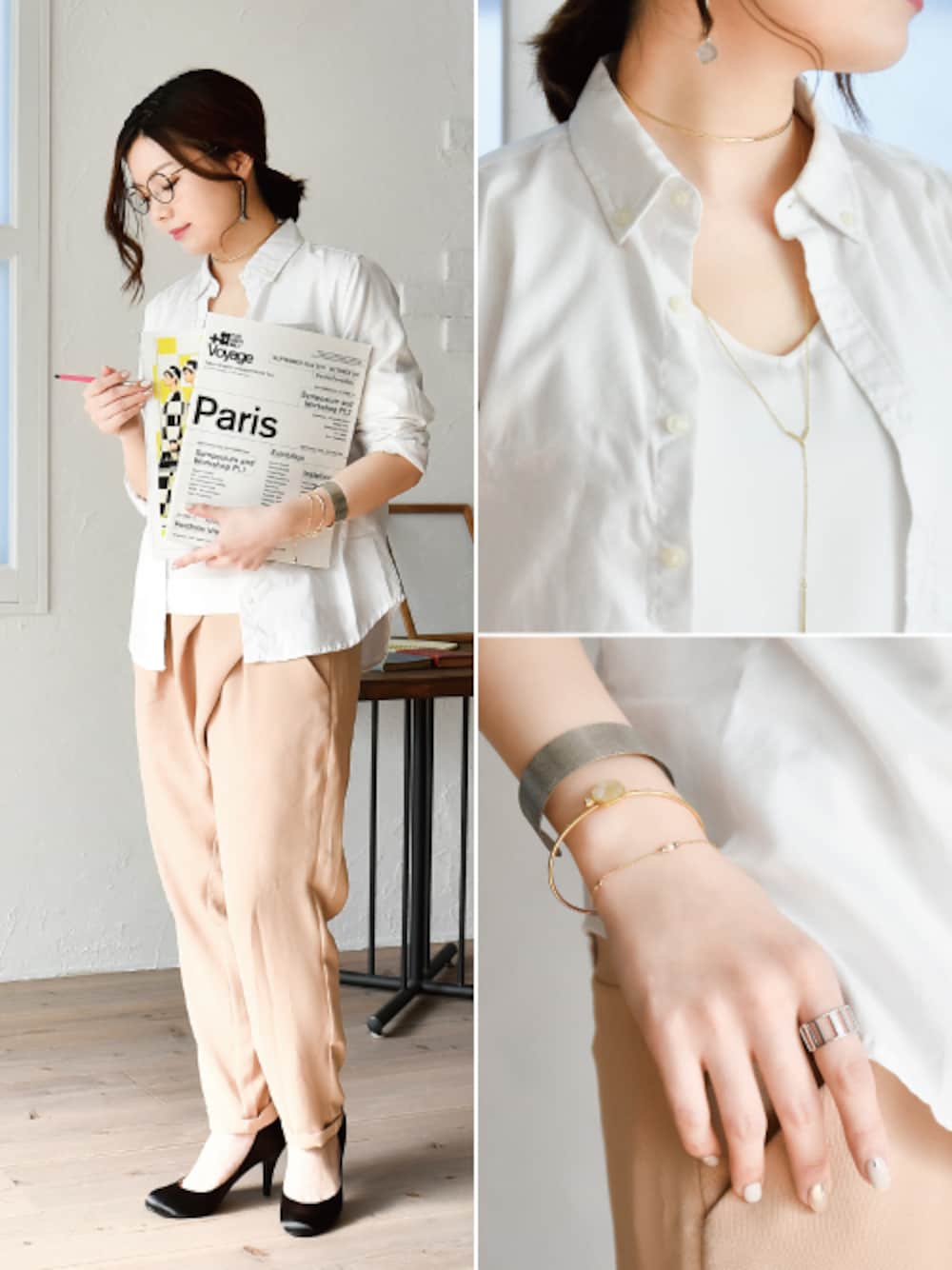 いつもJewel Addict WEARをご覧頂きありがとうございます♪ 本日は、春のハンサムシャツコーデを、 トレンドのシルバー×ゴールドを合わせてレディライクに仕上げてみました! 爽やかなシルバーを、phoebeらしいフェミニンなゴールドデザインで女性らしく。 普段の装いもアクセサリーの重ね着けで華やかに春らしく衣替えできます♪ 長さのあるピアスと、Yラインネックレスで、首まわりをすっきり演出。 シャツコーデを女性らしく楽しむことが出来ます☆ 手元は幅のあるバングルで、華奢見せ効果♪ phoebeでは、これからの季節に嬉しい新作がぞくぞくと入荷しております! 是非チェックしてみてください☆